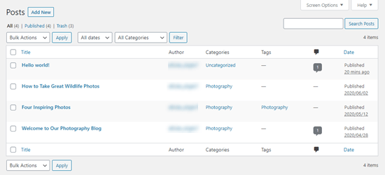 You'll find all your posts under Posts » All Posts. They'll have the correct fourth dimension stamps, categories, tags, and comments.